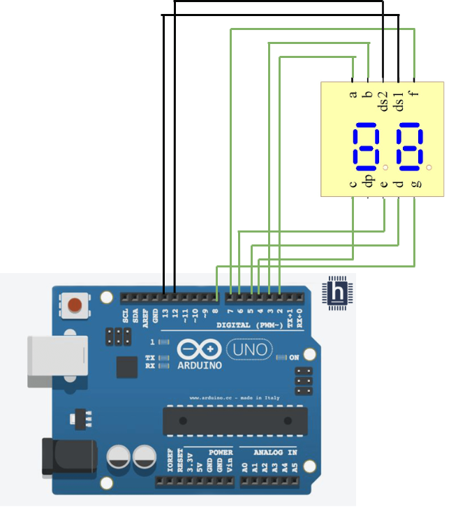 pinMode(13, OUTPUT);//declare 7 seg Digit2 pin as output