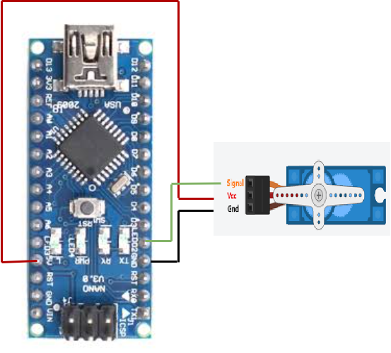 - Arduino Nano controls a servo motor to rotate to specific angles (e.g., 90° or 180°) by sending PWM signals via a programmed digital pin.